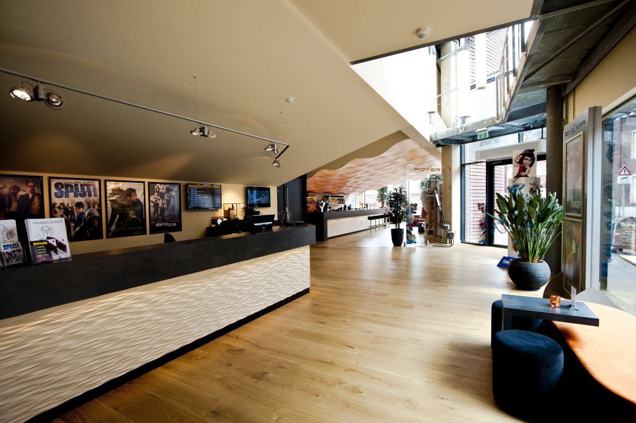 De 4 filmzalen zijn zijn tegen de achtergrenzen van het kavel geschoven. Aan de openbare ruimte ligt de transparante foyer. Intieme zithoeken en de bar zijn onder de hoge kanten van de zalen geschoven en maken de foyer gezellig. De Picardie (één van de oudere straten van Venlo) loopt sterk omhoog naar de entree, waardoor de vloer van de foyer soms onder, en dan weer boven de straat ligt.
